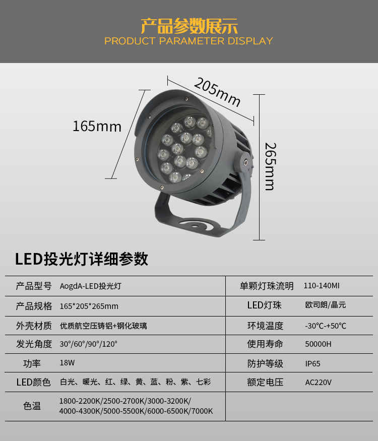 產(chǎn)品品名:新款LED投光燈;聚光投光燈